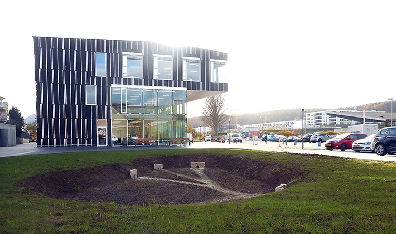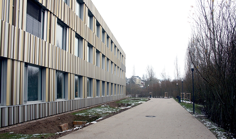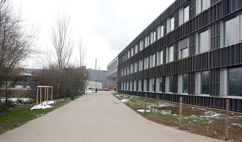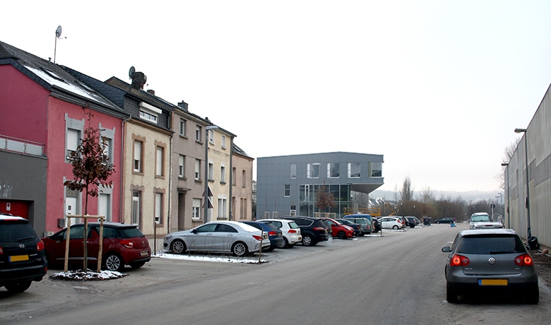 Cette vocation complètement nouvelle du site n’a pas seulement nécessité d’importants travaux d’infrastructure, d’assainissement et d’extension des réseaux pour l’approvisionnement des nouveaux bâtiments. Elle a surtout abouti dans le réaménagement complet de la rue du Gaz selon le principe d’un espace urbain partagé, qui avait été retenu pour les aménagements autour du futur Lycée International afin d’étendre le parc de la Chiers et de créer ainsi une transition harmonieuse vers les espaces urbains.