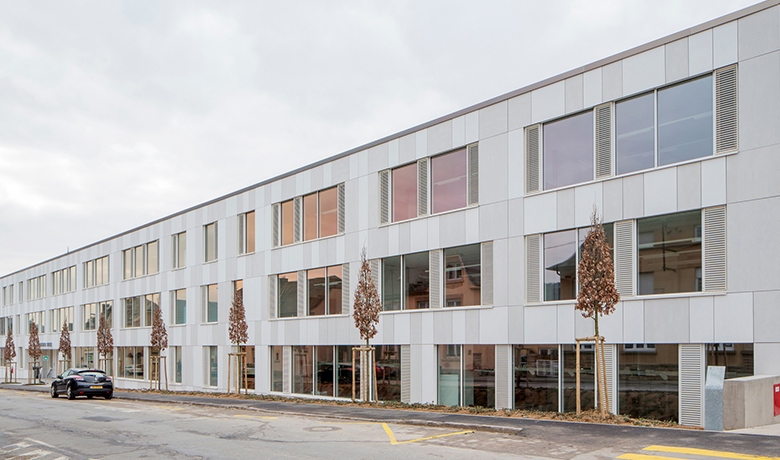 Das teilweise unterkellerte Gebäude besteht aus insgesamt fünf Niveaus (Erdgeschoss, 2-3 Obergeschosse sowie einer Tiefgarage für 49 Stellplätze) und wurde komplett nach dem Basler Energie-Konzept geplant. Die min. 34 cm starken Flachdecken werden von Betonstützen und -wänden getragen (Achsraster rund 8,50 x 5,50 m), die fast ausschließlich in Sichtbetonqualität hergestellt wurden. Als Gründung kam eine tragende Bodenplatte zur Ausführung.