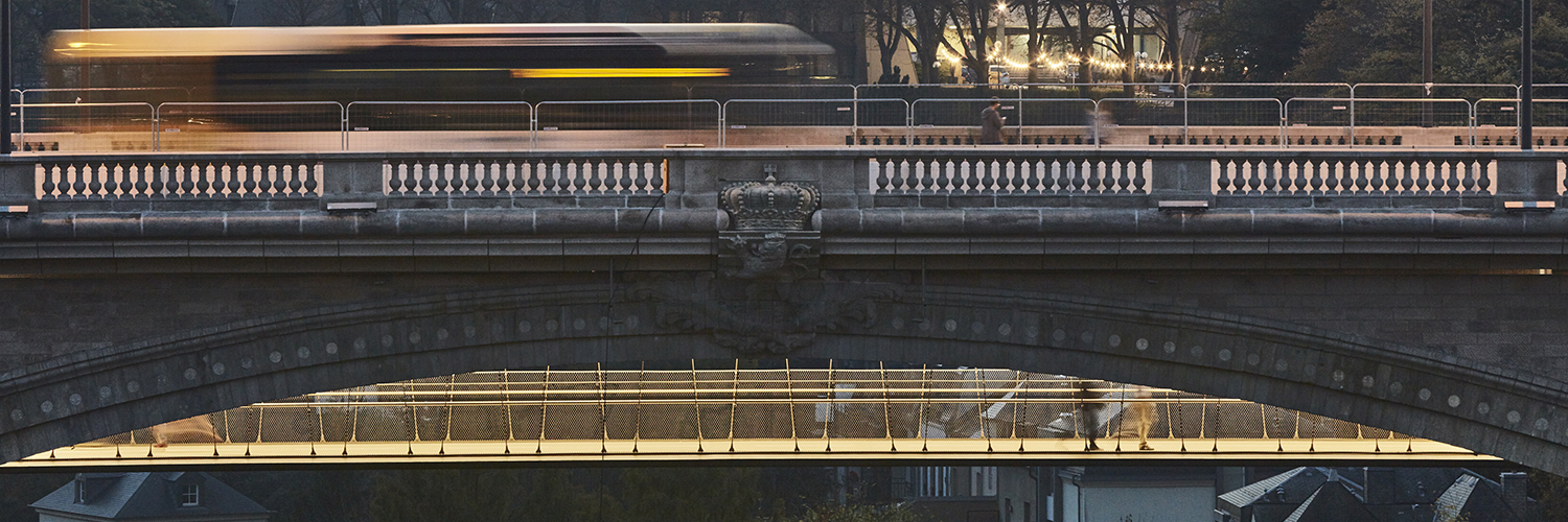 Début septembre, les prix semestriels ont été annoncés par le magazine britannique Bridge Design & Engineering lors de la conférence internationale sur les ponts. Le jury international a récompensé la conception de la passerelle pour piétons et cyclistes sous le pont Adolphe avec les commentaires suivants : "L'originalité de ce projet, initialement inscrit dans la catégorie des longues portées, a impressionné les juges par ses détails, sa sobriété et le choix du système structurel. Les juges ont été frappés par l'ingéniosité dont ils ont fait preuve pour créer un grand espace pour les utilisateurs sans nuire à la structure historique existante". Le jury a reconnu qu'il faut un effort exceptionnel pour rendre quelque chose d'aussi simple agréable à regarder, et il a été impressionné par la conception dans son contexte ainsi que par les détails qui contribuent à son aspect élancé... Le pont a été commandé par le MMTP : Ministère de la Mobilité et des Travaux publics - Administration des Ponts & Chaussées et a été réalisé par INCA Ingénieurs Conseils Associés S.à r.l. en collaboration avec CBA Architectes, SOLUDEC/LuxTP et MBB - Metallic Bridges of Belgium s.a. (Ateliers Poncin).