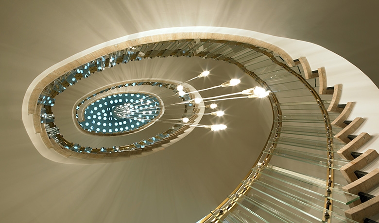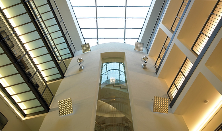 Mais il était hors de question de revenir à la typologie des maisons anciennes plus autonomes, certes, mais peu adaptées au mode de vie actuel. Aussi la disposition des maisons autour d’une cour intérieure a-t-elle mise à profit pour aménager un hall central coiffé d’une verrière et pour y installer un ascenseur commun. Celui-ci donne accès par des paliers en verre aux différents logements organisés dans les étages. Au sous-sol il est relié par un tunnel aux caves et au parking situé sous la nouvelle extension du conseil d’Etat.