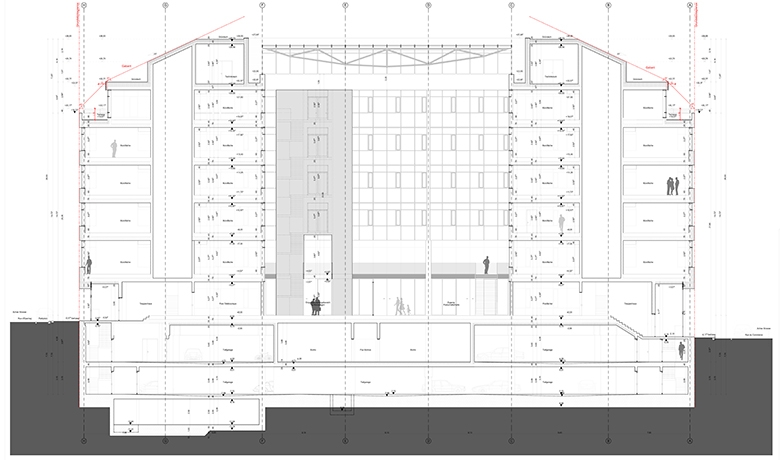 Toutes les démarches architecturales et techniques sont mises en œuvre dans un esprit de durabilité et de confort d’utilisation sous l’objectif de la certification DGNB au niveau PLATIN, tout en respectant un délai de réalisation très serré de trois ans et demi, études et démolition comprises.