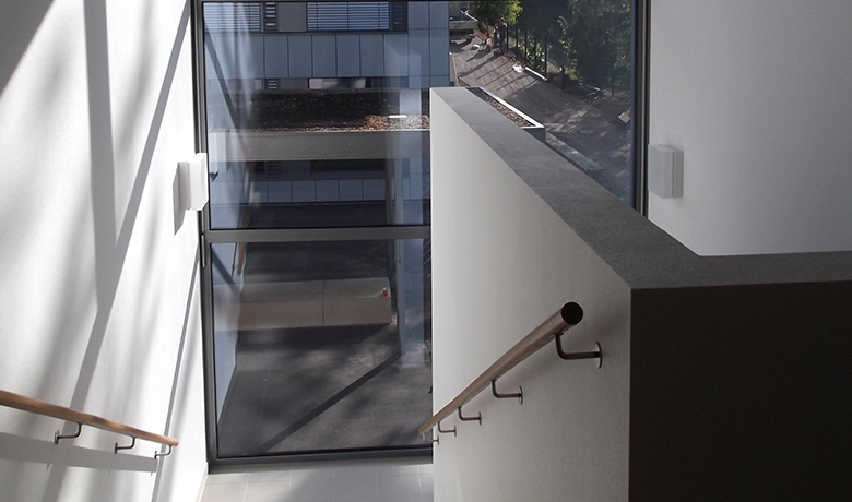 La structure portante mixte de poteaux en acier parés de voiles en béton est munie de dalles alvéolaires et d’éléments de façade isolants préfabriqués, définis selon la meilleure relation entre le comportement thermique, acoustique et hygrométrique.