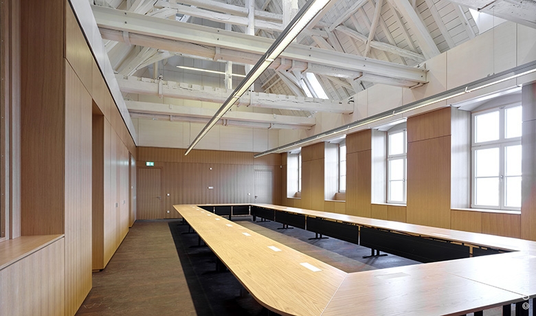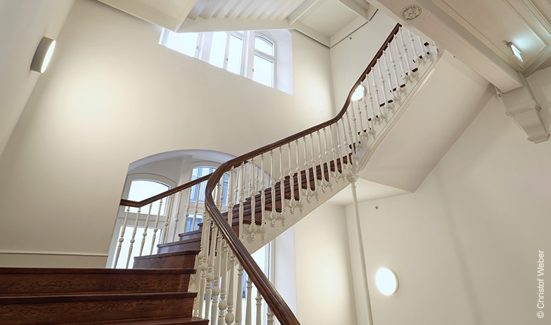 Afin de garantir un bon fonctionnement du bâtiment pour les quelques 140 occupants, d'importants travaux de renforcement - reprises en sous-œuvre, planchers, murs, charpentes de toiture - ont été indispensables. Vu la valeur patrimoniale du bâtiment, une rénovation douce a été imposée, à savoir que tous ces travaux ainsi que l’intégration des techniques spéciales ont posé un grand défi (Sprinklage, HVAC, BT, …) et ont été réalisés en sauvegardant tous ces éléments historiques répertoriés selon une analyse archéologique fine (plafonds en stuc, parquets historiques, charpentes, portes, façades…). De plus, les nouvelles interventions ont garanti la préservation de l’architecture ancienne et permettent désormais une lecture claire des différentes époques et phases de construction.