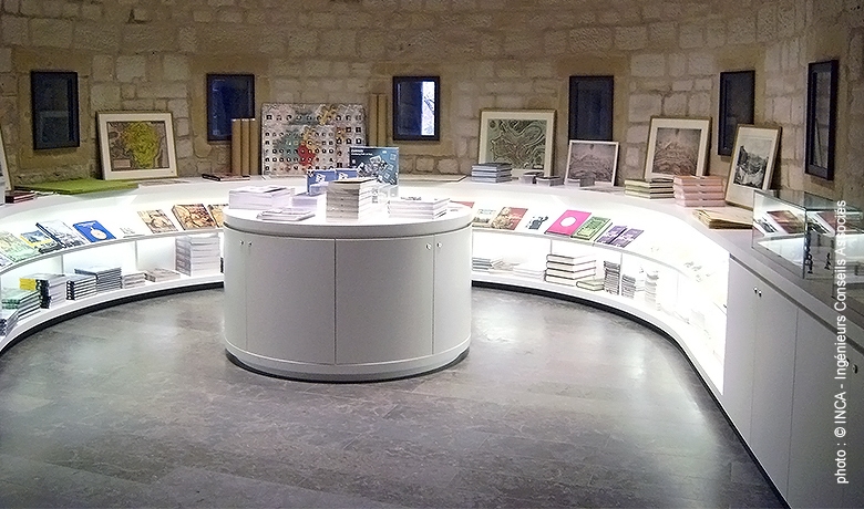 Derrière la porte d’accès principale en bois, le nouveau sas d’accueil vitré permet d’accéder à la première casemate dont le plafond voûté et les murs d’origine ont été mis en valeur suite à un micro-sablage. Les petites salles attenantes ont été aménagées en book-shop et cafétéria. Tous les châssis et vitrages de ces salles ont été remplacés par des châssis à coupure thermique avec double vitrage.