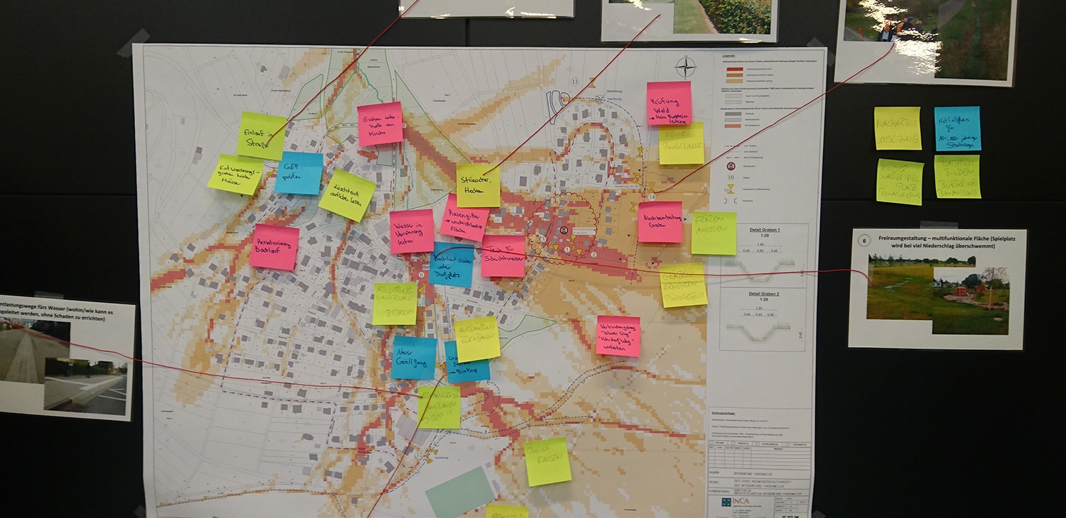 Dabei lag der Schwerpunkt auf der Auswertung des Starkregenereignisses vom 27.08.2010, einer intensiven Bürgerbeteiligung mit 2 Bürgerworkshops, sowie der Maßnahmenentwicklung von Vorsorgemaßnahmen im umfassenden Themenbereich der Hochwasser- und Starkregenvorsorge.