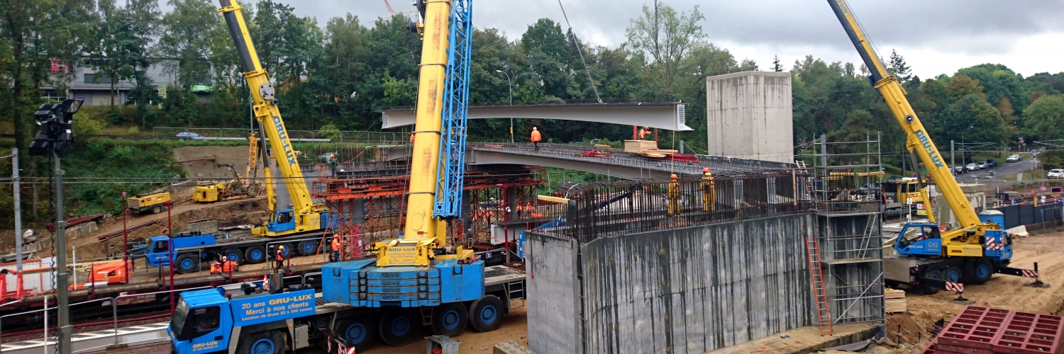 09/10/2017Du 30 septembre jusqu’au 1er octobre 2017, les poutres du nouveau passage supérieur OA736 à Cents ont été posées avec succès. Ce passage supérieur, enjambant la ligne ferroviaire en liaisonnant la route nationale RN 2 (Val de Hamm) avec la rue des Alouettes à Cents, est réalisé en raison de la suppression du passage à niveau PN56 de Cents.