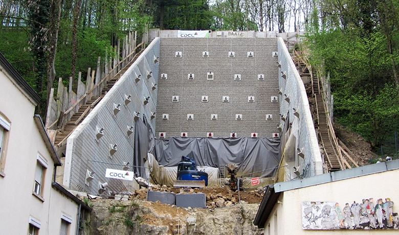 Lors de la réalisation du canyon, il a été constaté que la roche était moins dense que les estimations, ce qui a exigé une adaptation du gunitage et de placement de tirants. Les vibrations causées par la marche et la course des piétons ont dû être analysées et prises en compte dans la stabilité de la construction afin de respecter l’architecture prévue pour le projet. L‘exposition au soleil et à la chaleur a de même dû être prise en compte dans la sélection des différents matériaux. des différents éléments de la construction ont été analysés afin d’adapter les matériaux utilisés.