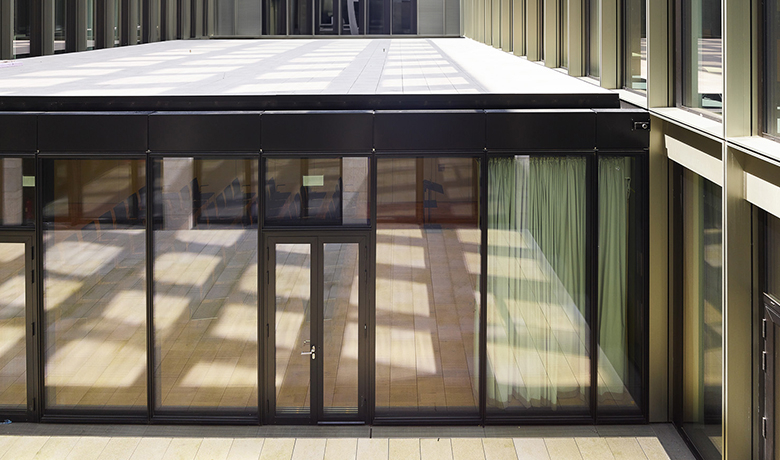 En raison de leur grande portée (12-15 mètres), le foyer ainsi que la grande salle de réunion dans la cour intérieure à l'est ont été réalisé en construction mixte.