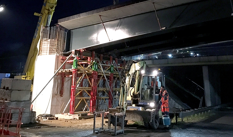 Cet ouvrage à structure mixte intégrale (encastré dans des culées) aura deux travées dont une de