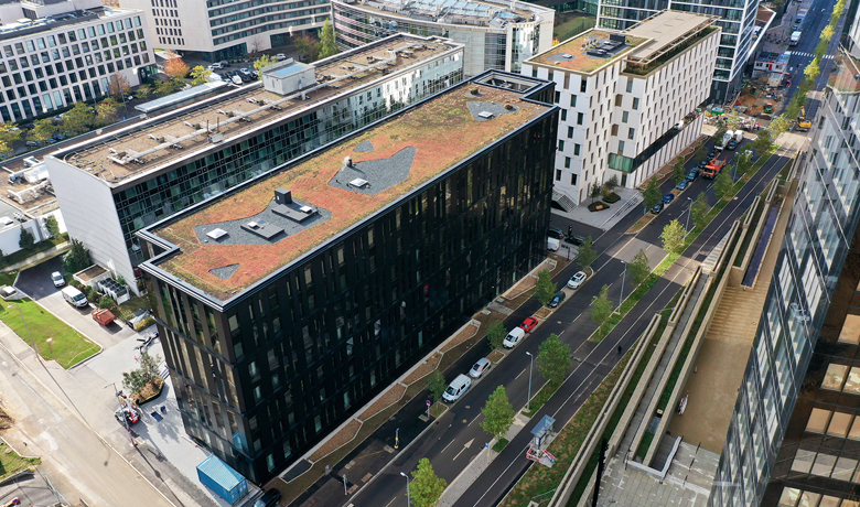 Le bâtiment consiste en un complexe de bureaux et d'hôtel de 6 étages en surface, relié en sous-sol par un parking souterrain de deux étages, qui s'étend sous l'esplanade adjacente. Dans la zone centrale, on a intégré un poste de police de proximité qui s'étend sur le rez-de-chaussée, -1 et -2.