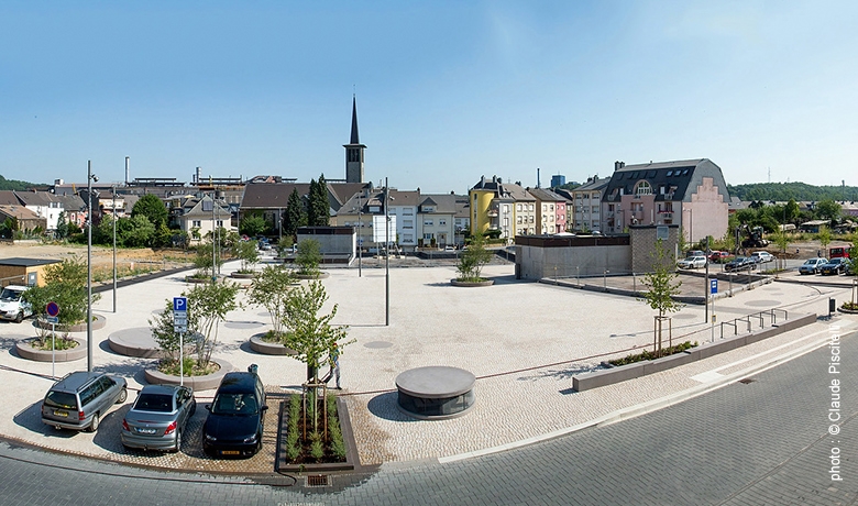 DifferdangeDans le cadre de la valorisation du quartier Fousbann, la Ville de Differdange a réaménagé la Place des Alliés, utilisée jadis exclusivement comme aire de stationnement, en une place publique attractive favorisant la rencontre des habitants du quartier et pouvant servir d’espace pour manifestations.