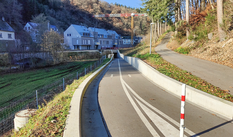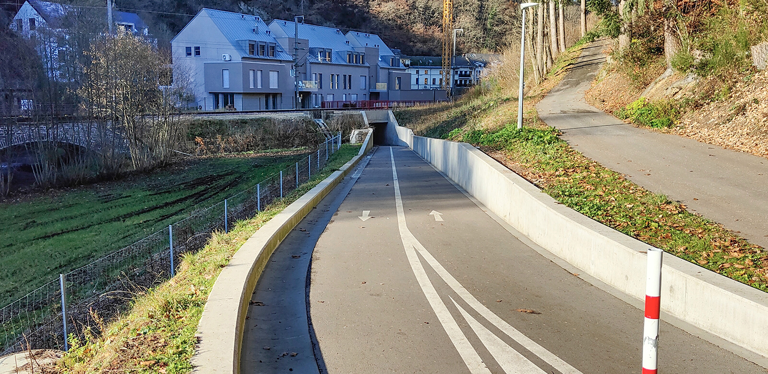 ClervauxLe passage souterrain pour cyclistes sous la voie ferroviaire à Clervaux constitue un maillon essentiel du réseau cyclable au Nord du pays. Ce projet s’intègre dans la réalisation de la piste cyclable du Nord PC21 qui prend son départ à Ettelbruck pour rejoindre le territoire belge près de la Schmiede.