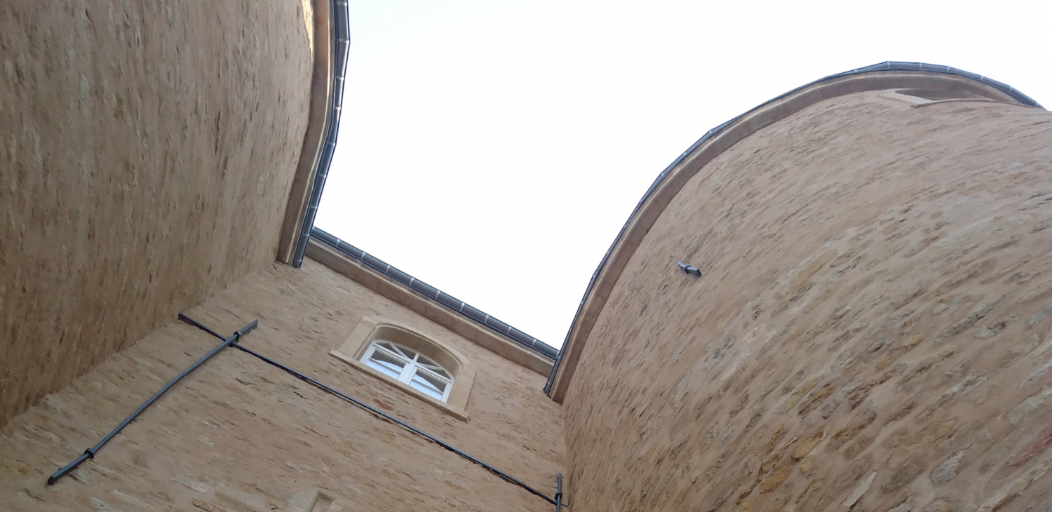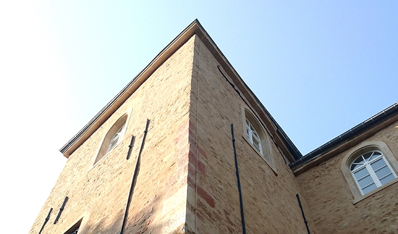 Les travaux concernent le renforcement de la charpente, la nouvelle couverture, la consolidation des fissures, le remplacement des pierres abîmées en façade, la restauration des anciennes fenêtres, le décapage des joints existant et la mise en oeuvre d'un enduit à base de chaux.